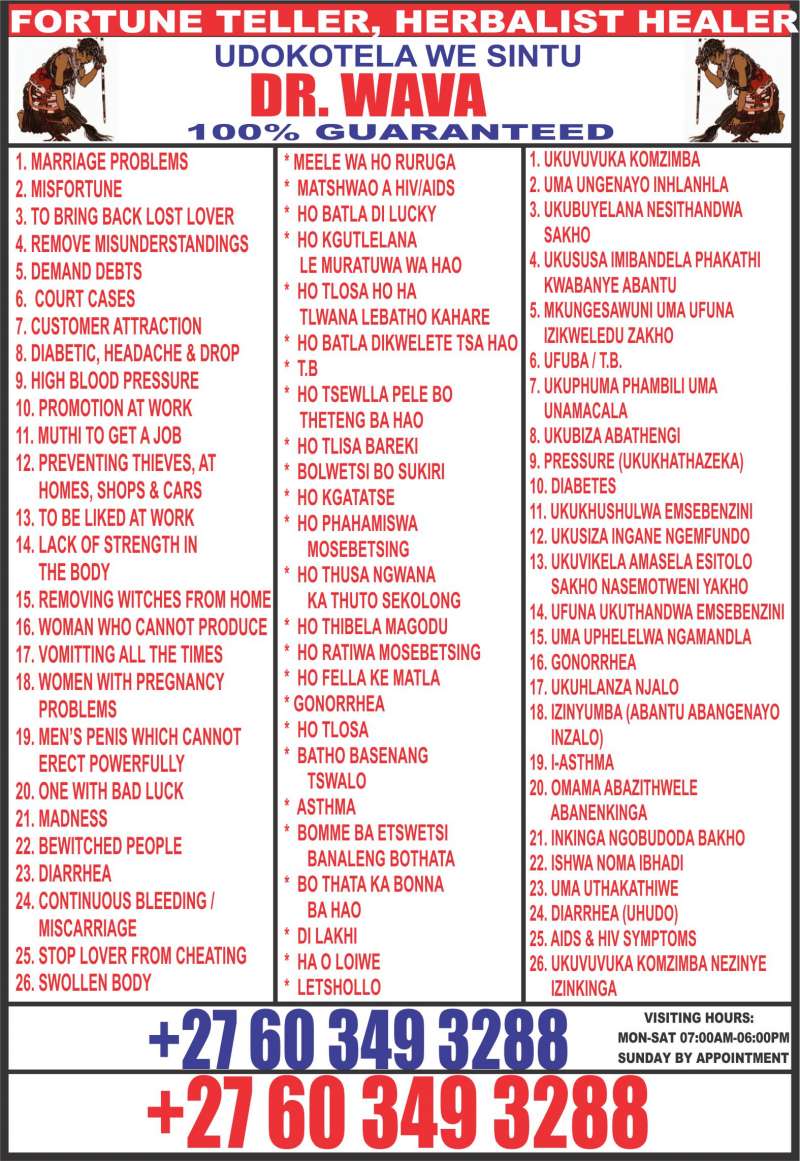 VISIT: https://drwavaofspirituallovespells.com_____Welcome to Baba Wava a powerful Sangoma, powerful traditional spiritual healer, Psychic love spells caster, Black Magic removal in South Africa and worldwide. Are you looking for the best online or one on one help? Call Baba wava (+27)603493288. Through the use of my lifelong practices in native healing techniques, dreaming and trance work, I am able to reach within to an individual’s eternal soul, unblocking the paths and tunnels to one’s own innate healing abilities allowing one’s life force to burn brightly once again, enlivening peace, abundance, joy, and creativity. Native healing works on all facets of the person _____* past, present and future _____* restoring and opening the natural lines for personal success in mind, body and spirit. No matter how difficult problem is there is a solution. “A spiritual Solution” when it is free initial consultation so why not come in touch and speak with Baba wava to see how he can help in your case. It doesn’t matter how many times you have been dis appointed and lost a lot of money while trying your luck, today is your day to wipe off all your tears and leave with a smile. Specializes In Love Spell Casting I Have Mastered The Art Of Creating Love Remedies To Help Reunite Lovers & Guide People To Find True Love & Soul mate Connections. My Spell Casting Services Also Come In Packages to Build A Better Connection Between You & Your Loved One Specializes In Love Spell Casting I Have Mastered The Art Of Creating Love Remedies To Help Reunite Lovers & Guide People To Find Their True Love & Soulmate Connections. My Spell Casting Services Also Come In Packages to Build a Better Connection between You & Your Loved One