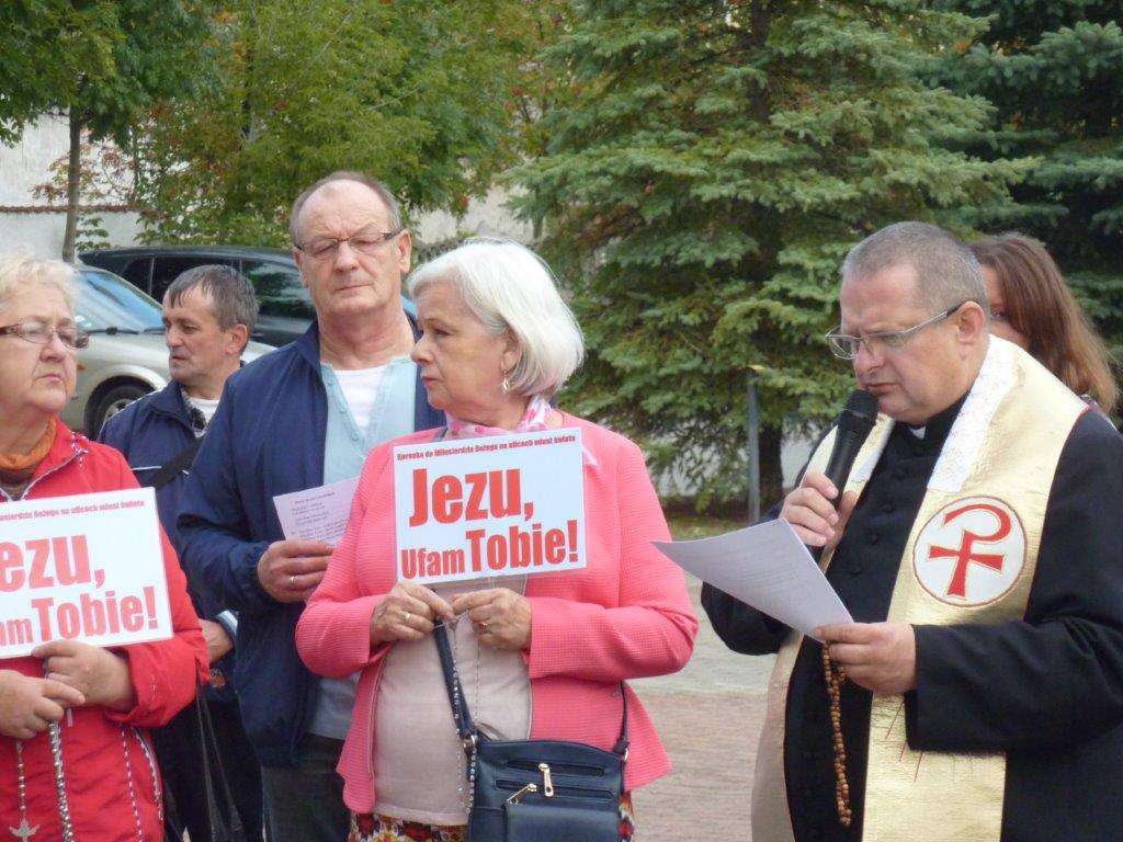 Następnie zgromadzeni udali się w kierunku jednej z głównych ulic Słubic by tam odmówić koronkę do Bożego Miłosierdzia w intencjach: