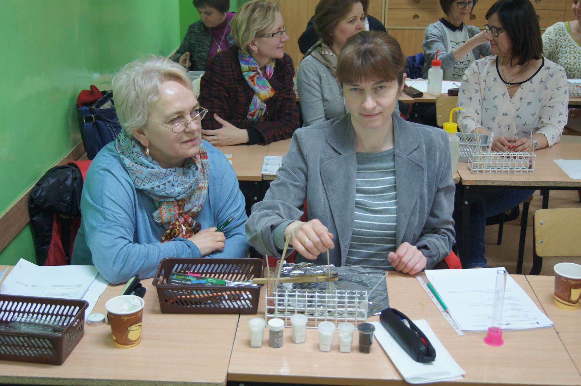 Dwunastu nauczycieli ze Szkoły Podstawowej w Kowalowie i Liceum Ogólnokształcącego w Rzepinie wzięli udział w szkoleniu „Eksperyment w procesie nauczania – w teorii i praktyce” zorganizowanym w ramach projektu dofinansowanego z Funduszy Europejskich „Z nauką pod rękę”. Zajęcia warsztatowe przeprowadzone zostały przez wykładowców z Centrum Chemii w Małej Skali z Torunia. Celami były pogłębienie wiedzy na temat metody eksperymentu w szkole, zwrócenie uwagi na możliwość praktycznego nauczania przedmiotów przyrodniczo-matematycznych, wykorzystania walorów środowiska naturalnego w najbliższej okolicy, połączenie nowinek technologicznych z rzeczywistym doświadczeniem.