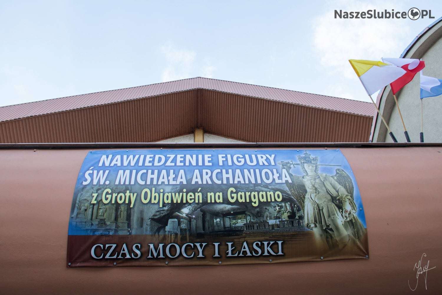 Ponad 1800 km jechała do Słubic znajdująca się w południowo-wschodnim regionie Włoch, zwanym Apulią, na górze Gargano (850 m.n.p.m.), w mieście Monte Sant’Angelo (Górze Świętego Anioła) figura Św. Michała Archanioła. Sam przyjazd poprzedziło nabożeństwo oczekiwania. Wierni wraz z proboszczem parafii - dziekanem Henrykiem Wojnarem wyruszyli orszakiem powitalnym po przybyłą w eskorcie policji, straży pożarnej (OSP Słubice) i straży miejskiej pod Kościół figurę, którą strażacy z OSP Słubice przenieśli do wnętrza Kościoła, gdzie nastąpiło jej uroczyste powitanie. Burmistrz miasta Tomasz Ciszewicz podczas powitania zawierzył Słubice Świętemu Michałowi, dziękując mu za ochronę przed powodzią 97 roku. Delegacje składające się z rodzin i zaproszonych gości (byli także goście z Frankfurtu nad Odrą) wygłosiły mowy okolicznościowe. Na zaproszenie ks. dziekana Henryka Wojnara na uroczystości peregrynacji figury Św. Michała Archanioła pojawił się starosta słubicki - Marcin Jabłoński oraz wicestarosta Leopold Owsiak wraz z małżonką. We mszy świętej uczestniczyli radni rady miejskiej: Ewa Chustecka wraz z mężem Ryszardem, Krystyna Baczyńska, Daniel Szurka, Bernard Jasiewicz, Waldemar Dutkiewicz, Jarosław Sadowski, Grzegorz Cholewczyński i przewodniczący rady miejskiej w Słubicach - Mariusz Olejniczak.