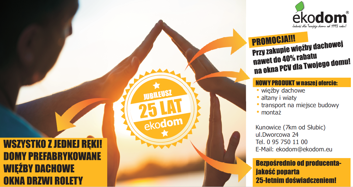 Od lat cechuje nas wysoka precyzja wykonania. Stosujemy zawsze impregnację materiału. Na rynku istnieje przekonanie, że tradycyjne wykonanie więźby jest znacznie tańsze. Jednakże w rzeczywistości to właśnie prefabrykacja sprawia, że przy wykonaniu więźby zużywa się mniejsze ilości drewna, a i sama prefabrykacja znacznie przyśpiesza pracę na budowie – mówi prezes firmy ekodom Pan Jan Głogowski- wychodząc naprzeciw Klientom i wykorzystując nasze możliwości produkcyjne w chwili obecnej mamy promocję skierowaną dla wszystkich inwestorów – przy zakupie więźby dachowej w naszej firmie oferujemy wszystkim klientom do 50% rabatu na zakup okien do całego domu.