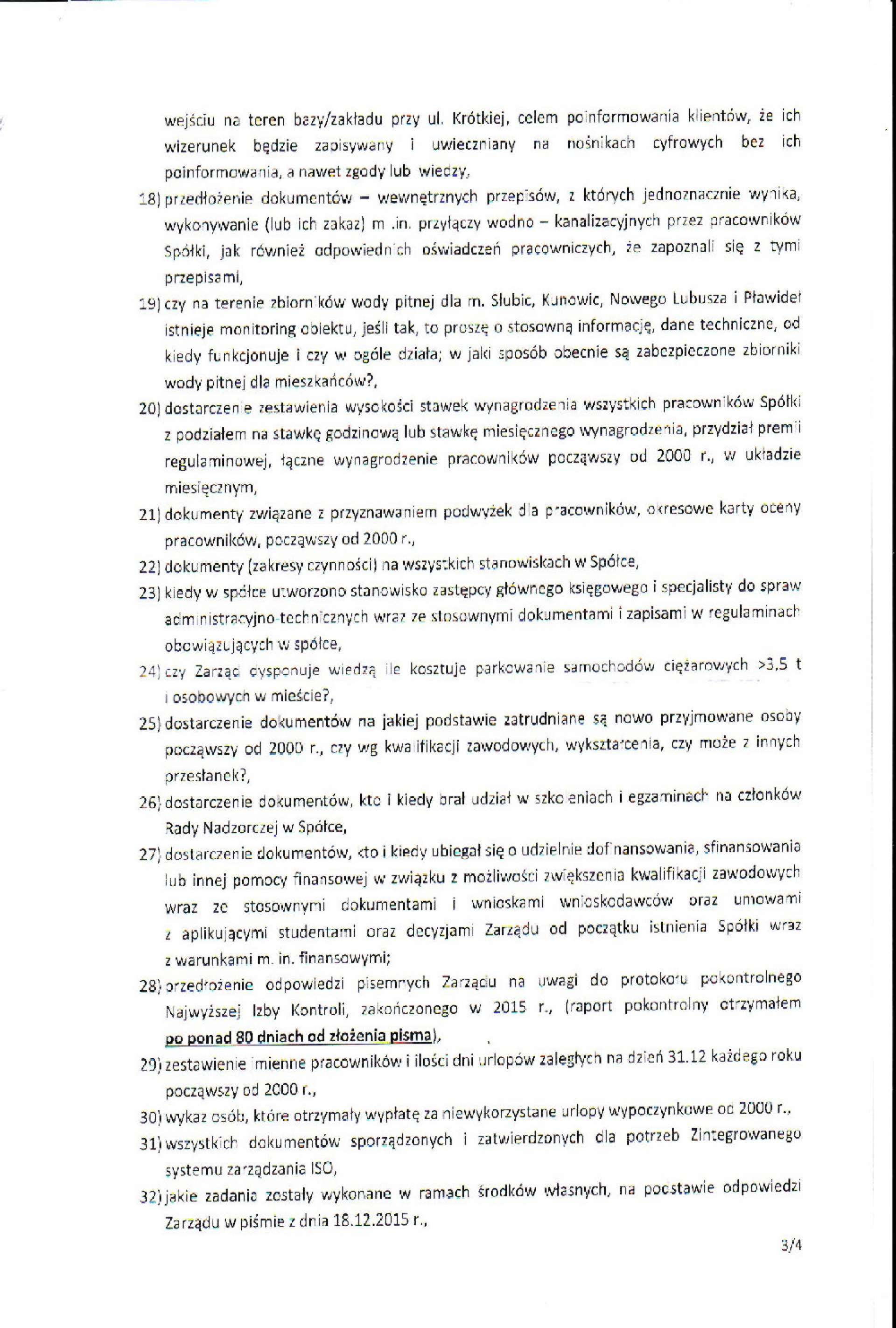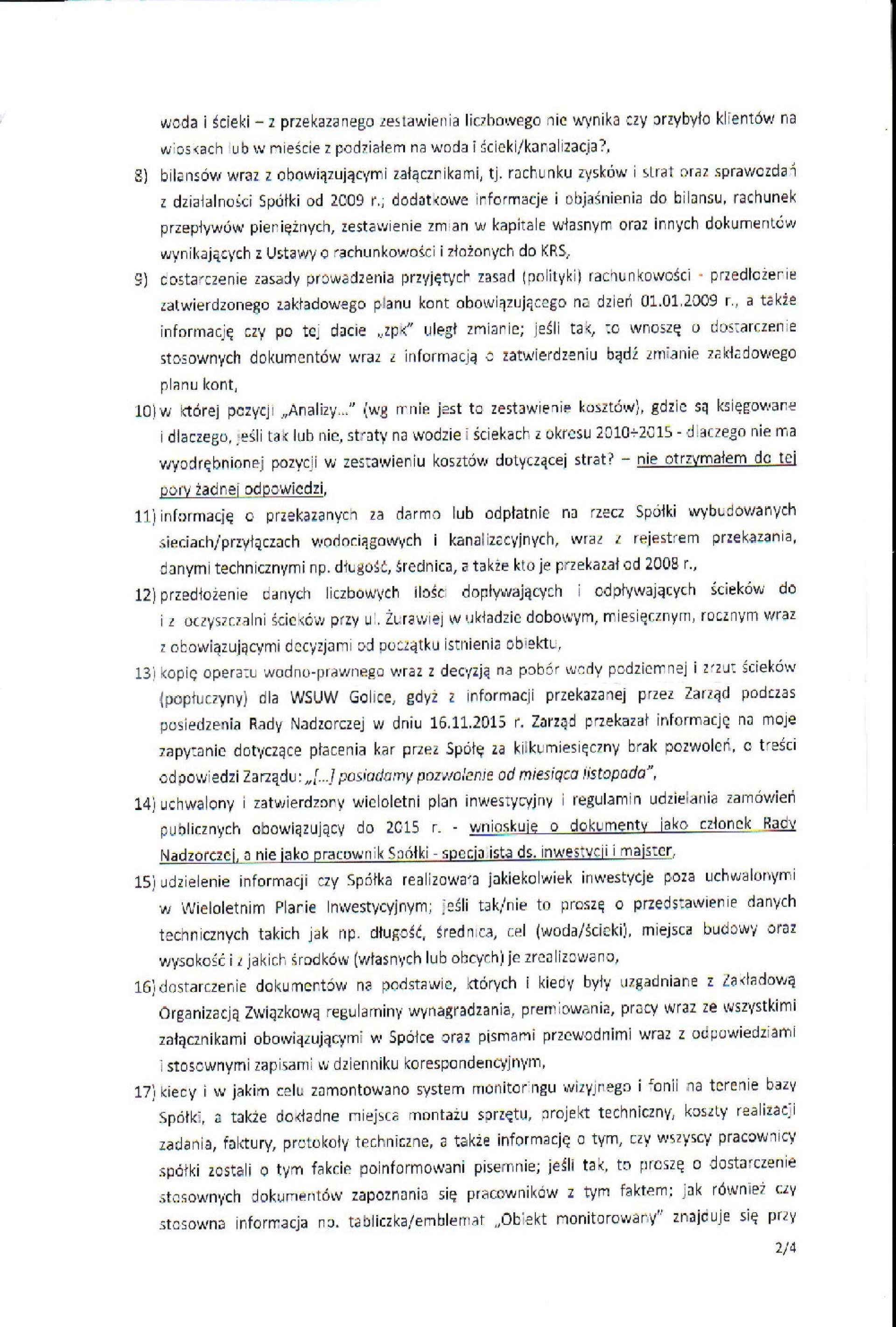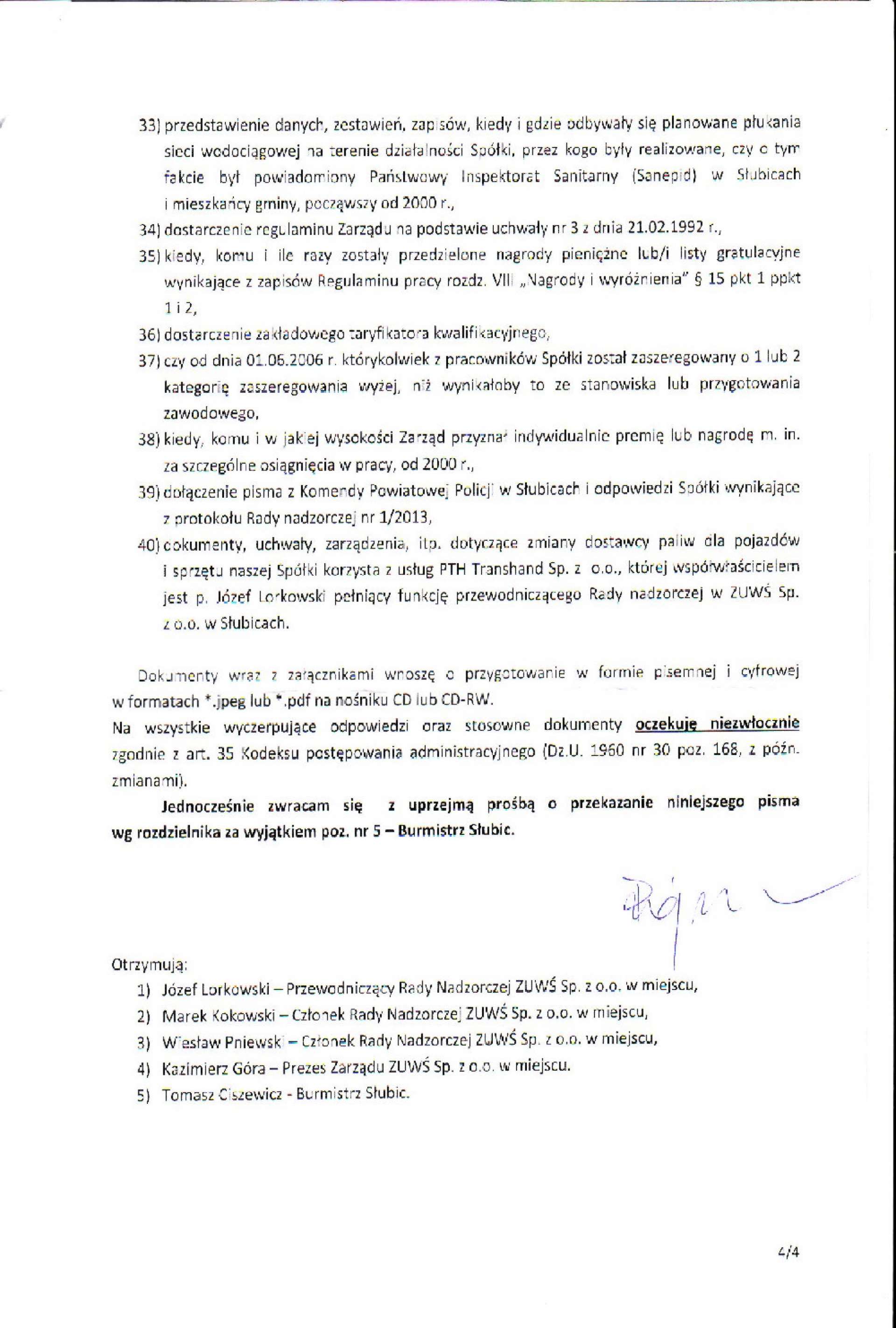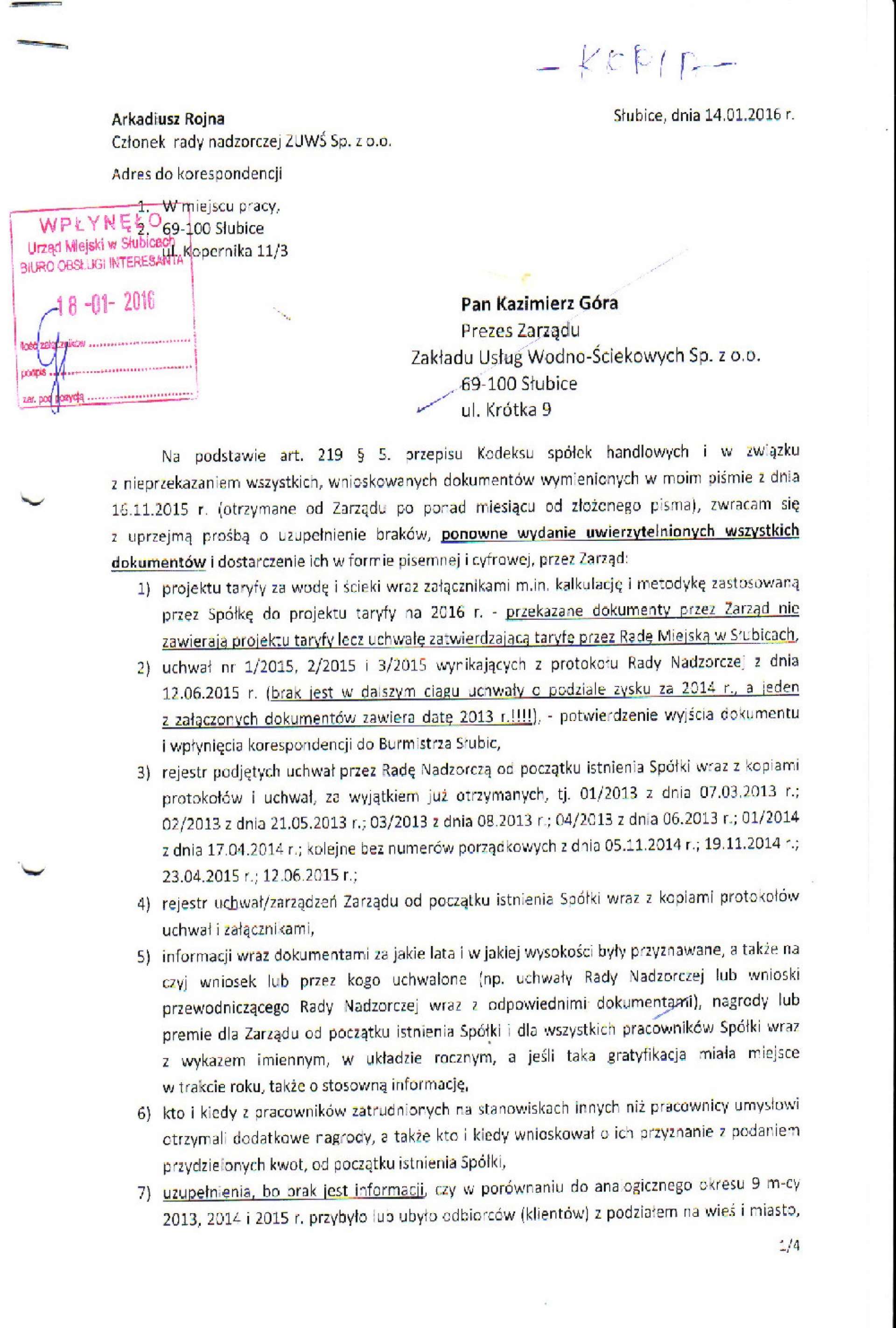 Występowałem do Pana jako członek Rady Nadzorczej Zakładu Usług Wodno-Ściekowych Sp. z o.o., reprezentujący załogę, przez którą zostałem wybrany większością głosów. Zgodnie z art. 219 Kodeksu spółek handlowych miałem pełne prawo nadzoru nad funkcjonowaniem Spółki.