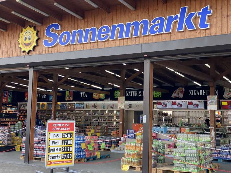 Der Sonnenmarkt bietet ein großes Sortiment an Lebensmitteln, unter anderem Kaffee, Tee, Getränke, alkoholische Getränke, Tabakwaren und Industrie- und Haushaltsverarbeitungsgüter.